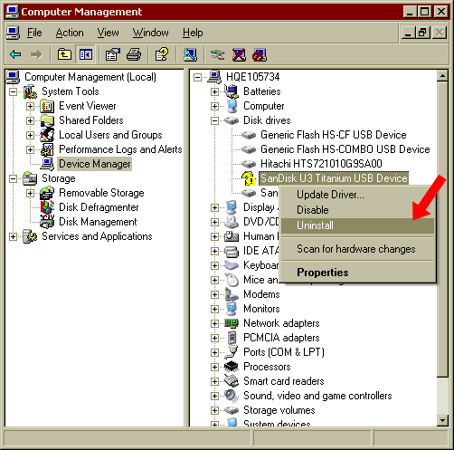 注意: Cruzer闪存盘在设备管理器下可能会显示在如下区域: