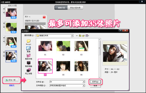 单击“添加一帧”按钮将要放入相册中的照片逐一添加进来。