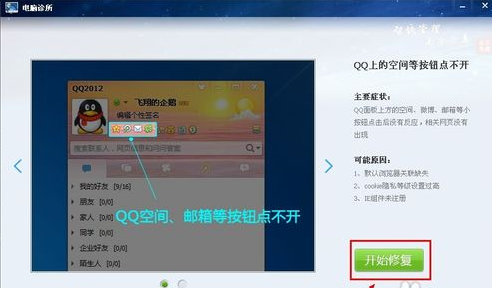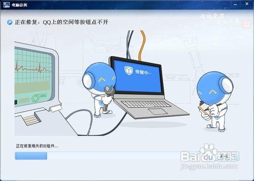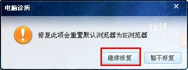 3、然后点击“开始修复” ,可能弹出是否设置IE为默认的提示框,点继续修复,之后会显示修复过程。
