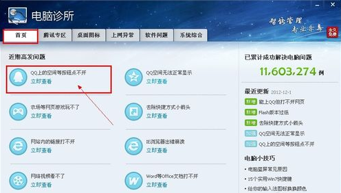 1、打开电脑管家,并如图点击电脑诊所按钮。