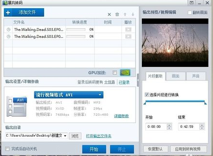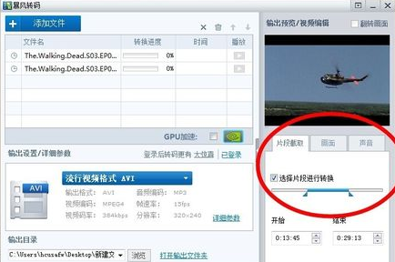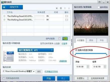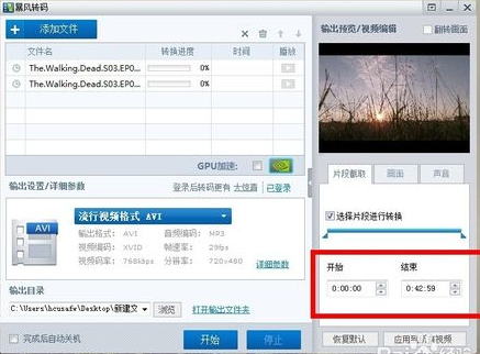 7、确定要截取的片段设置声音和画面质量,可以输出视频了