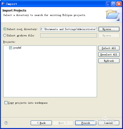 4、回到Import界面,点击finish(完成)按钮,完成导入工作。