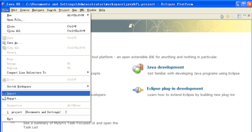 1、点击Eclipse界面中的file(文件)下的import(导入)。