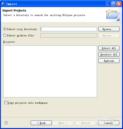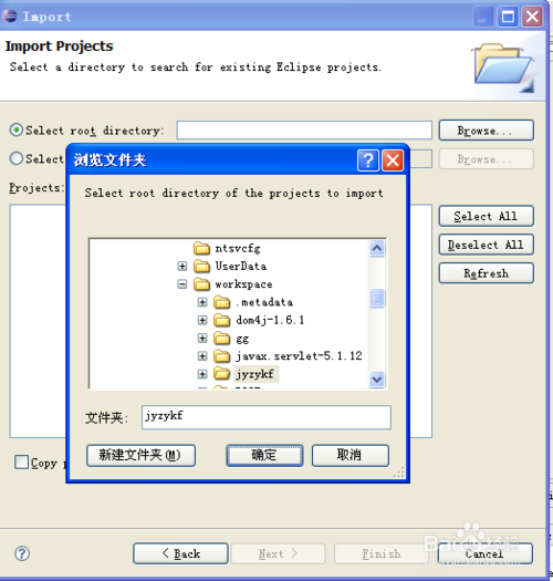 3、点击Select root directory:选项行的后面的Browse按钮(就是第一个Browse按钮),选择自己工程文件夹,点击确定。