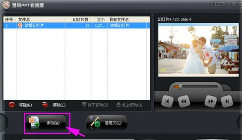 5、打开PPT转换器,点击转换界面的“”按钮将结婚照幻灯片插入转换器中: