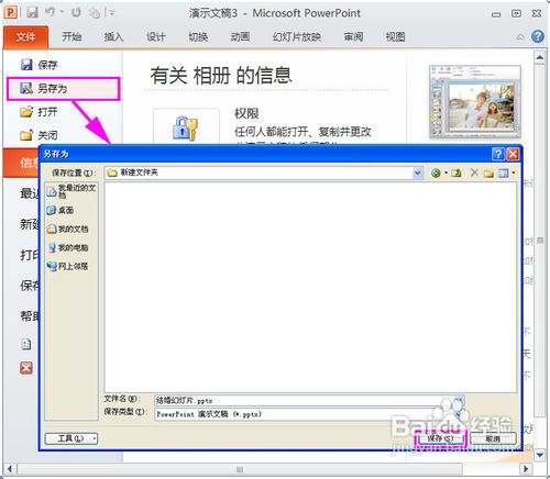4、给效果的结婚照幻灯片加上切换效果完成后,点击“文件”→“另存为”,把幻灯片命名为“结婚照幻灯片”然后保存起来(保存位置别忘记了哦!)
