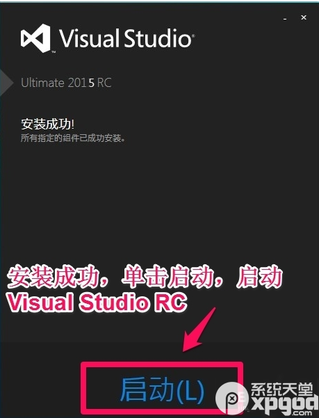 七、安装结束后,显示【安装成功】界面,点击【启动】按钮,可启动Visual Studio 2015