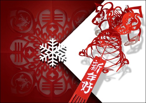 3. 再来使用美图秀秀打开一张从网上下载的背景图片,很有年味吧,还是中国传统的剪纸艺术呢!
