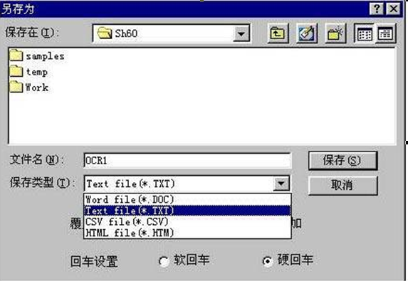 5. 识别校对完成后,存盘格式的选择文件保存的类型有四种,建议一般文本的识别,用户选择TXT格式。