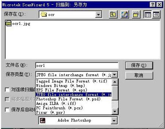 选择“扫描到”的文件格式是TIF或者JPG两者都可以。将扫描的文件存在用户确定的目录下面。