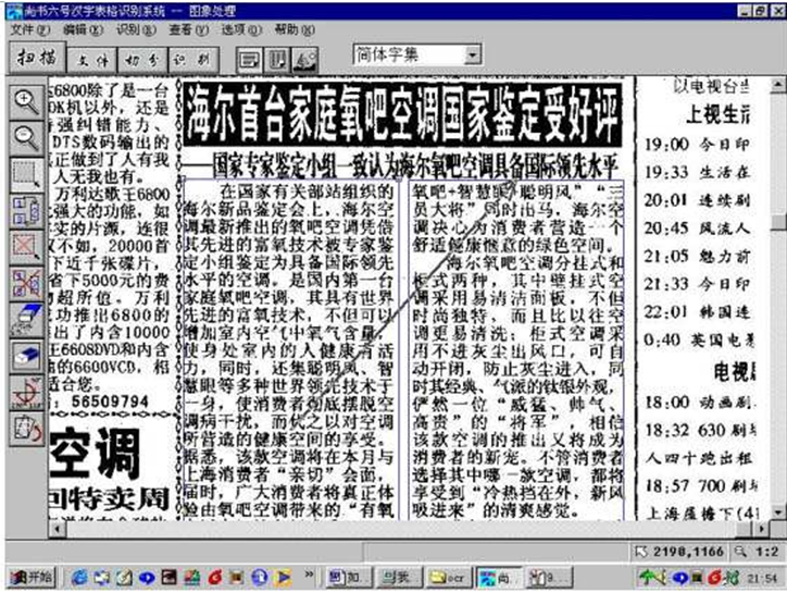 如下的“海尔”一文,实际是分成两个栏目,进行阅读的,所以我们在设定识别区域的时候,注意需要将这个特点表现出来,需要设定两个识别区域,如图所示。