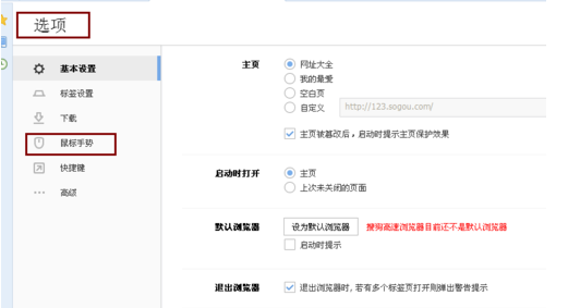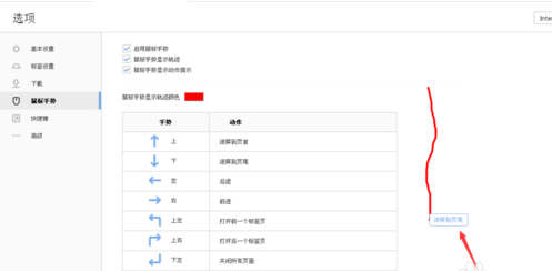 4、在设置的选项里面,我们在左边找到鼠标手势