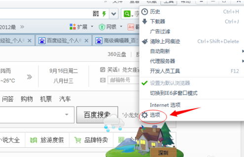 1、打开浏览器,找到右上角的工具选项,点击打开,看到最后的选项按钮,再点击打开。