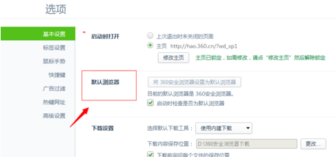 2、跳转进入浏览器设置页面,看到基本设置里面的下载设置。