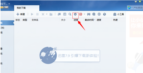 1、打开迅雷下载软件,找到系统设置的齿轮图标,点击打开,进入设置页面
