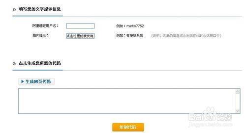 2、点击第一个搜索结果就会出现如图所示,这时我们选择好在线状态图片风格,然后在阿里旺旺用户名后方的输入框里面输入自己的阿里旺旺账号。
