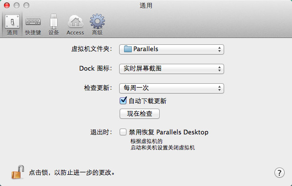 要选择 Parallels Desktop 是否自动下载更新,可选择或取消选择自动下载更新。