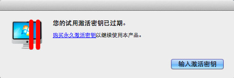 如果在安装Parallels Desktop过程中,你选择的是“获取试用”,现在14天试用期结束。想要注册Parallels Desktop,运行Parallels Desktop,会有这样的提示:您的使用激活密钥已过期。想要成功注册,点击“输入激活密钥”。