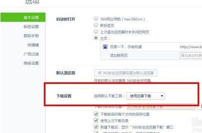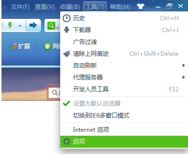2、设置浏览器默认下载工具为迅雷,这里以360浏览器为例:点击右上角工具,然后选择“选项”。