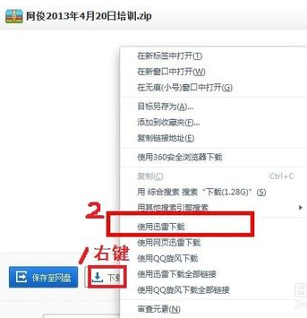 回到下载链接所在网页,用鼠标右键单击下载,然后选择“使用迅雷下载”