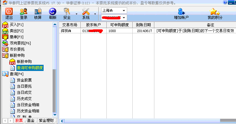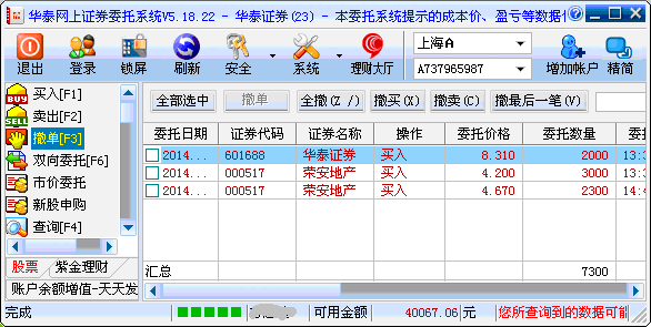 *没有成交的的委托可以撤单,集合竞价和新股申购不能撤单