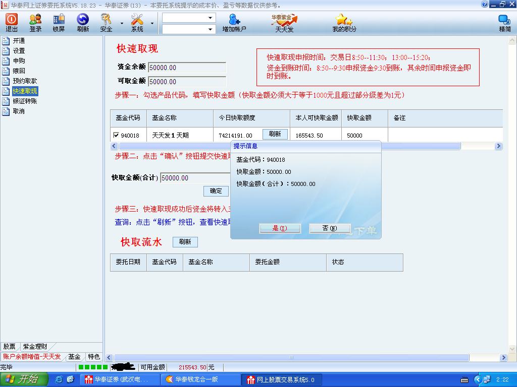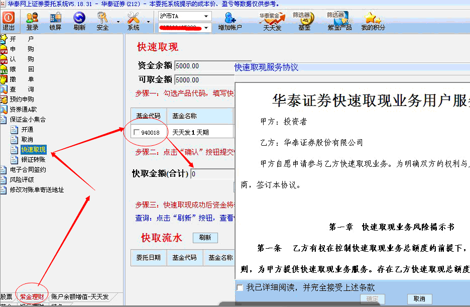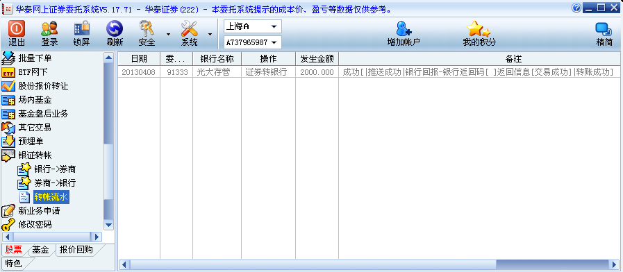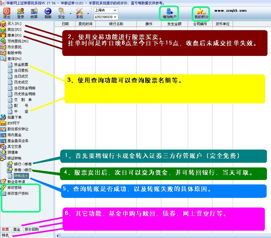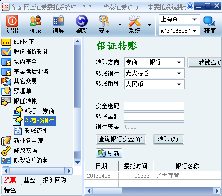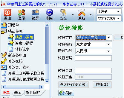 *、首先要将银行卡现金转入证券三方存管账户(完全免费)