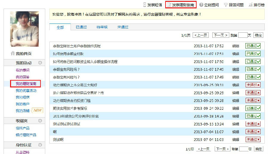 一、登录后进入个人中心http://www.jinfuzi.com/ucenter.html,点击右上方的“发布理财指南”