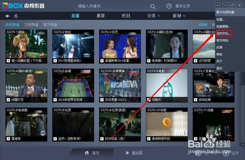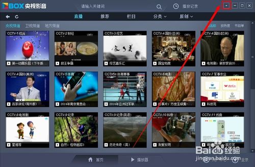 在CBox央视影音主页面右上角可以看到三角标记,点击打开下拉菜单。
