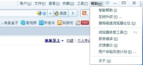 2、打开搜狗浏览器之后,在搜狗浏览器窗口的右上角点击帮助,如图所示: