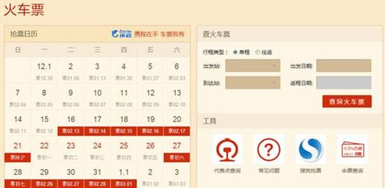 近日,搜狗搜索牵手携程网共同推出2015春运专题,一站集聚春运日历、火车票及机票查询、抢票、攻略、余票查询等丰富功能,全方位助力用户成功抢票,回家过年“快人一步”。