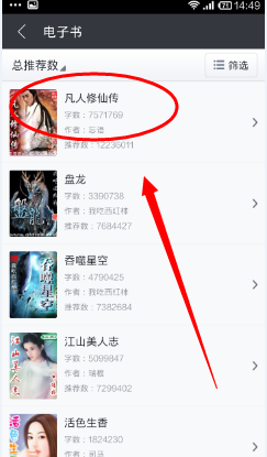3、选择要下载的小说,如第一个,点击电子书封面。