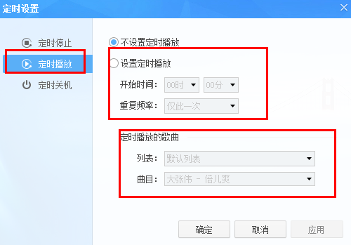 第三步:选择定时播放按钮,然后再设置定时播放的时间和歌曲。