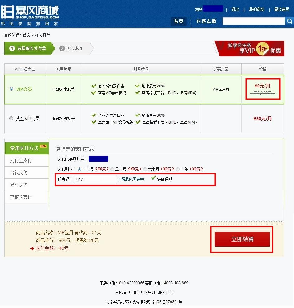 2.选择的VIP需与优惠码实际对应的VIP服务相符,系统验证通过可用。