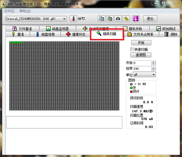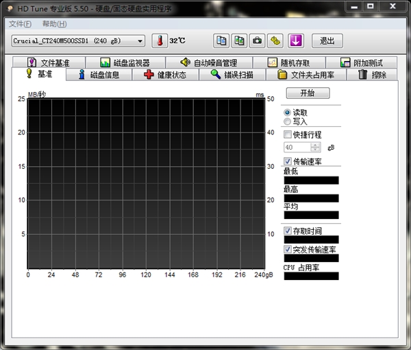 首先检测硬盘介绍一款实用的小工具:HDTune,主要功能有硬盘传输速率检测,健康状态检测,温度检测及磁盘表面扫描等。
