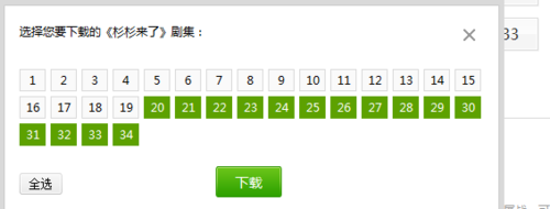 4、然后就会出来相关的集数,我们有时候可能是只点击了一个进行下载,这个其实我们可以直接选择好多集的,我们直接选择就好了。或者点击下面的全选,然后点击下载就好了。