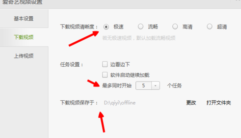 7、如果我们要不同时下载这么多的话,我们就点击设置按钮就可以了,在那里面可以进行设置的。以及可以选择我们下载的清晰程度,上面还显示我们下载所保存的位置。