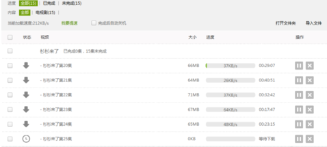 6、然后在界面上,我们会看到我们要下载的集数,以及同时下载的集数和速度。