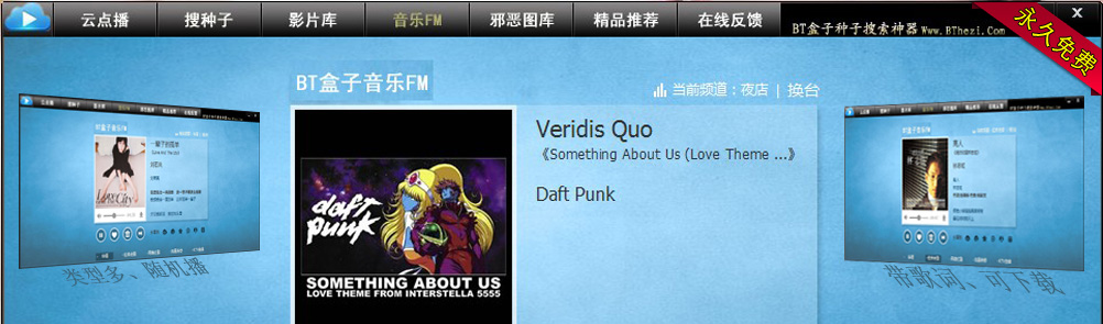 它会根据用户的喜好进行随机播放音乐,附带歌词展示、下载高品质音乐、音乐类型归类随机播放的实用选项。