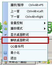 解锁则需通过系统托盘中QQ音乐图标的右键菜单来完成