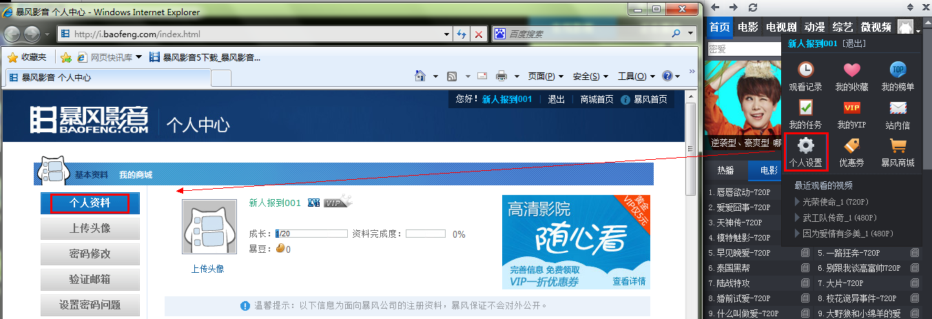 或者直接登录暴风影音个人中心http://i.baofeng.com进行填写、修改。