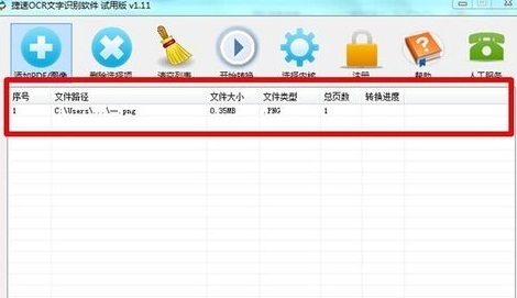 3、按照正常的操作步骤来就可以了,具体的操作步骤就不说了,打开软件后,我们可以直接通过软件上面的文件添加功能来把我们需要转换的扫描文件加入到软件内,添加好之后,你就可以在这个软件上面看到这个文件了。