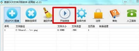 5、设置好文件的保存地址后,我们就可以对文件进行转换了,扫描文件转换之后,它将以txt文档的方式进行保存,接下来你就你需要点击软件上面的“开始转换”就可以了,现在就开始点击吧。
