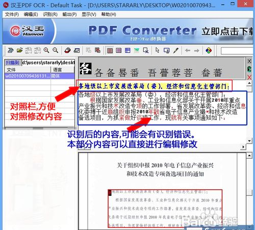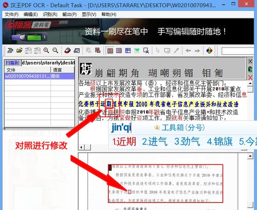 5、点击识别后,内容已经识别出来了,但根据图片材料的质量,识别出来的内容可能会有些错误,可以参考对照栏的内容将识别后的内容进行微调,修改: