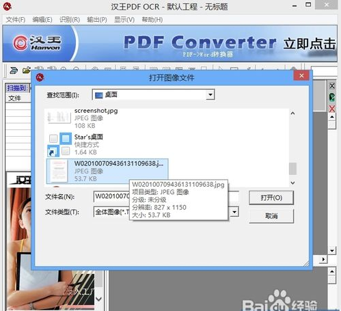 1、打开汉王ocr文字识别软件,点击"打开图像"按钮图标,导入准备识别的图片: