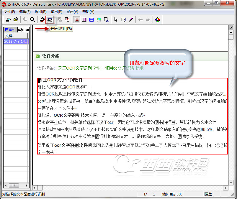 4.用鼠标圈定需要提取的文字,点击"开始识别"按钮即可!