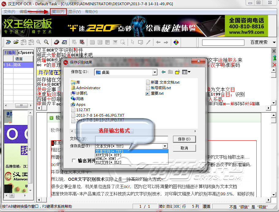 5.点击上边按钮"输出",保存即可!