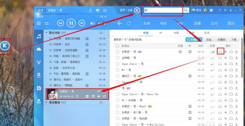 2、打开酷狗音乐盒,找到自己喜欢听得歌曲,然后播放。如图: