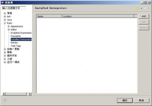 (1)打开Eclipse主界面,右击"我的电脑",点击"窗口",选择"首选项",进入对话框中"Ruby>InstalledInterpreters"入口,如下: