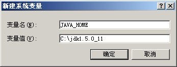 (2)建第一个系统变量:JAVA_HOME值:C:jdk1.5.0_11