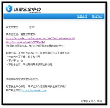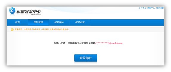 查看邮箱,是否接收到迅雷安全中心下发的邮件;